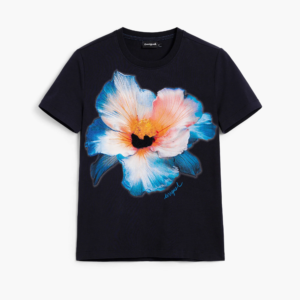 DESIGUAL T-Shirt mit großer Hibiskusblüte
