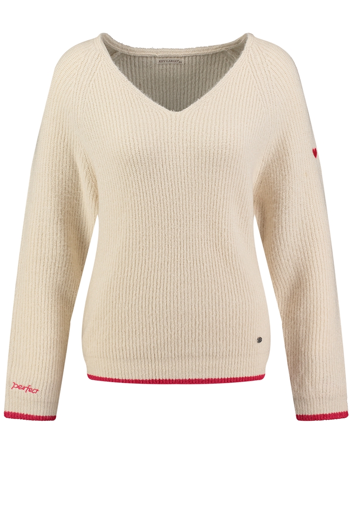 Key Largo V-Neck Pullover in offwhite/pink
