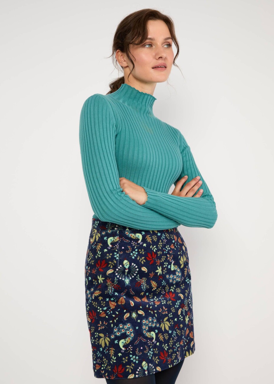 Kurz, cozy, unkompliziert: Dieser Rock aus elastischem Feincord ist ein echtes Lieblingsstück für Herbst und Winter. Der kurze, leicht ausgestellte Schnitt endet oberhalb des Knies, während der breite Formbund für einen bequemen Sitz sorgt.Ein verdeckter Reißverschluss im Rücken macht ihn unkompliziert-anziehbar. Das weiche Innenfutter schenkt zusätzlichen Komfort. Je nach Variante zeigt sich der Rock mit lebendigem Print, im markanten Leo-Look oder clean in Uni mit kleiner Stickerei – so kannst du je nach Stimmung dein Statement setzen. Kombiniert mit Strick, Blusen oder Boots ist er vielseitig tragbar – vom Stadtbummel bis zum Feierabenddrink.