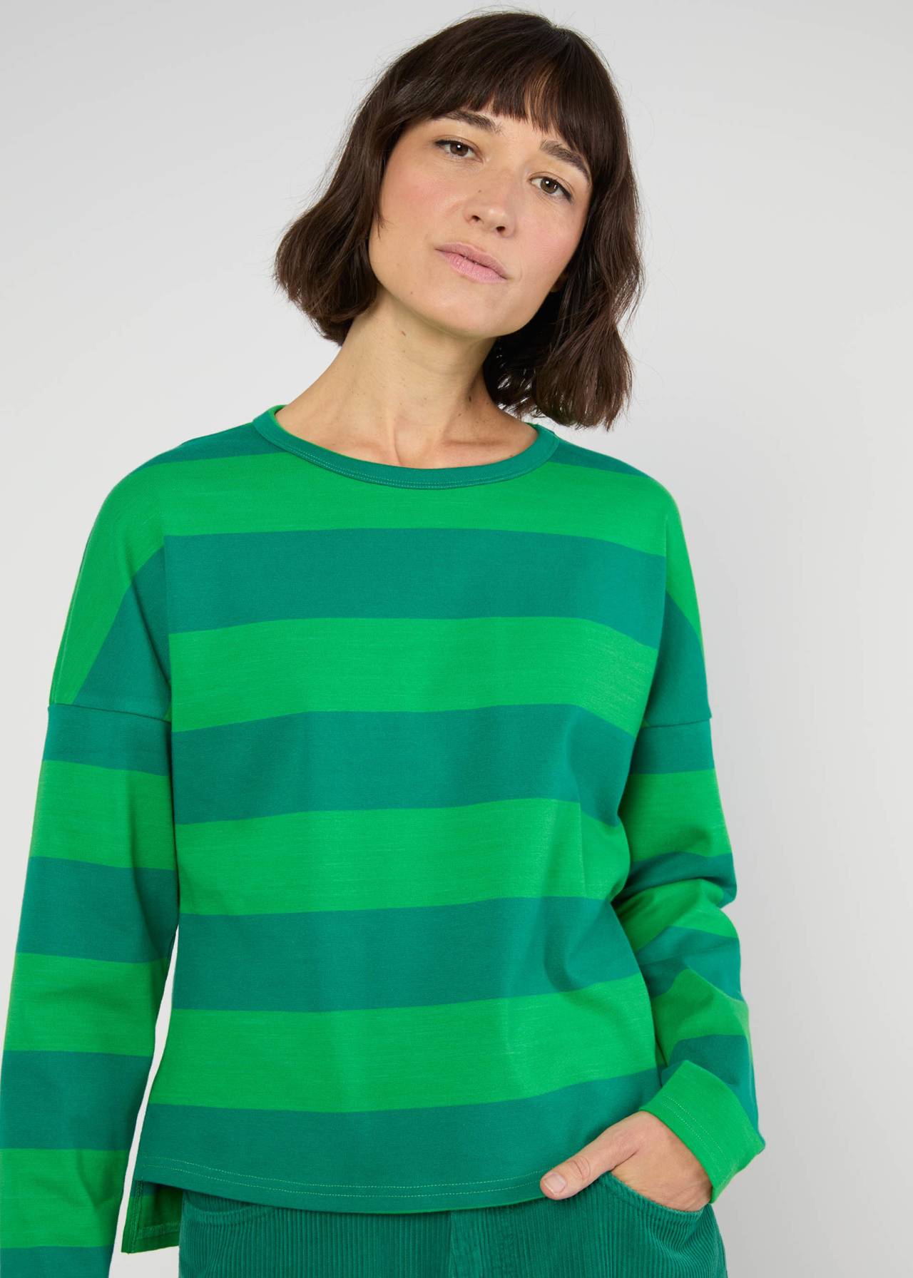 Longsleeve Stereo Rainbow Crew moosy green stripes