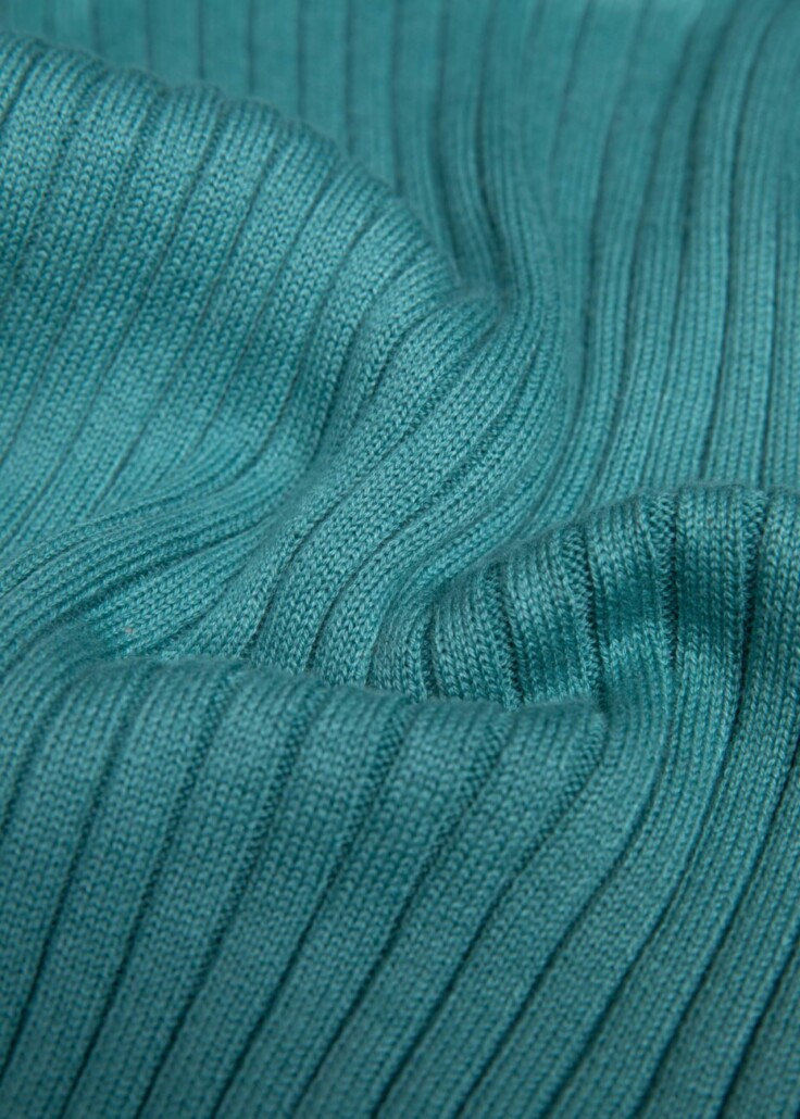 Die feine Materialmischung aus 70 % Biobaumwolle (GOTS-zertifiziert) und 30 % Lyocell (TENCEL™) kommt ganz ohne synthetische Fasern und Elasthan aus – und sitzt trotzdem wie angegossen. Der Zaubertrick: Die lässige Rippenstruktur passt sich dem Körper perfekt an und sorgt für eine schmeichelnde Silhouette.