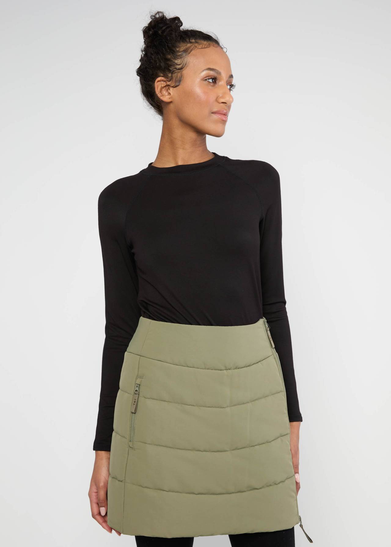 Warm eingepackt und modisch unterwegs: Dieser gesteppte Rock in femininer A-Linie ist die perfekte Ergänzung für Herbst und Winter. Der oberschenkellange Schnitt mit durchgehendem 2-Wege-Reißverschluss an der Vorderseite sorgt für Flexibilität und Komfort, während das recycelte Polyester-Material wasserabweisend und winddicht schützt.Die weiche Wattierung hält auch bei kalten Böen angenehm warm und macht den Rock zu einem kuscheligen Layer über Strumpfhosen oder Leggings. Ein farblich abgestimmtes Innenfutter, eine dezente Reißverschlusstasche und das Signature-Patch am Saum setzen durchdachte Akzente. Ob beim Spaziergang, auf Reisen oder beim Radeln in der Stadt – dieser Rock verbindet Funktionalität, Nachhaltigkeit und femininen Chic und lässt sich vielseitig stylen, von Sneakern bis zu robusten Boots.