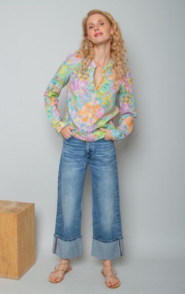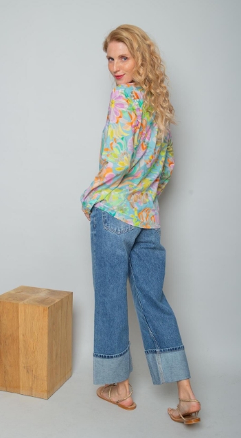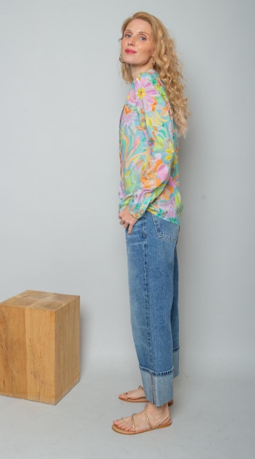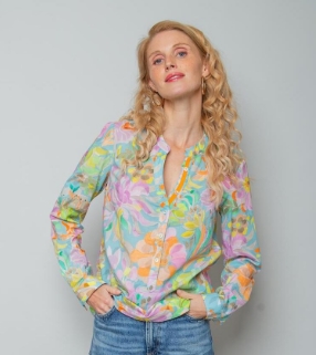 Damenbluse – bleu multi flower