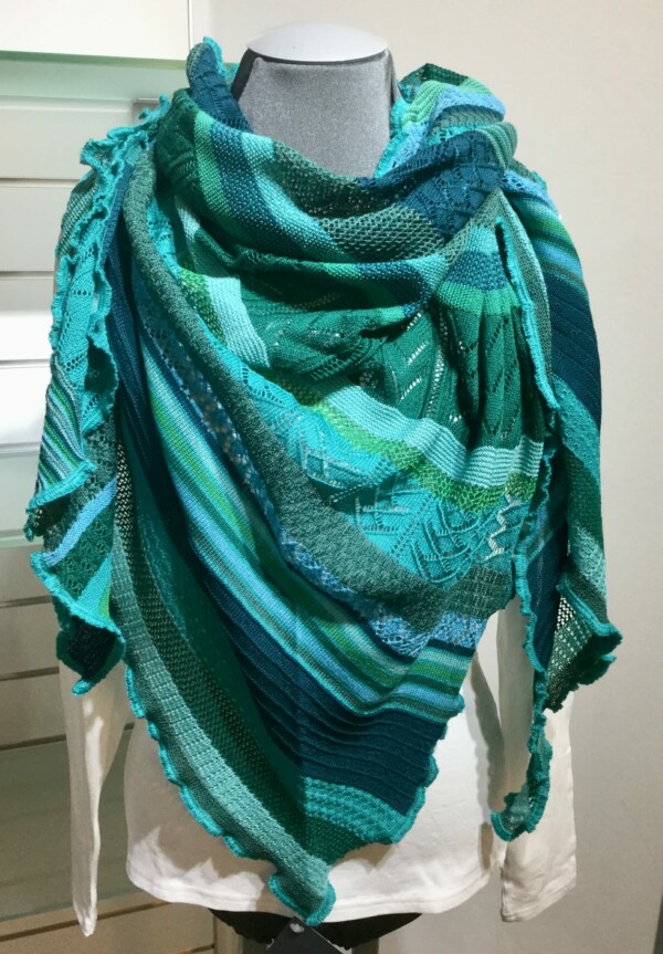 Wunderschönes Dreiecktuch aus feinstem Merino-Garn gestrickt in wunderschöner Farbkreation.100 % Schurwolle merino extra fine