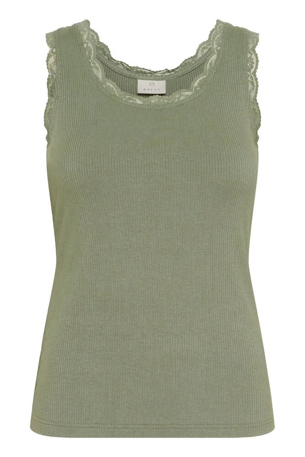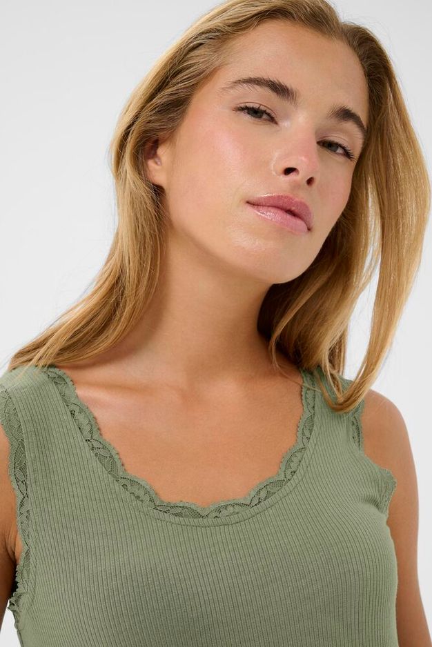 Süsses Top mit schöner Spitze! Passt genau zu der kurzen Strickjacke im Shop.