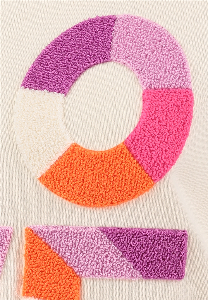 Das süsse Sweatshirt steht für Wohlfühl-Style mit Statement-Faktor. Das Sweat begeistert mit seinem farbenfrohen “LOVE”-Frontmotiv, dessen Buchstaben aus flauschigem, softem Material gefertigt sind – ein Highlight, das sofort auffällt und das Piece besonders cozy macht. Der lockere Schnitt, die weiche Sweatqualität und der moderne Rundhalsausschnitt sorgen für maximalen Komfort.