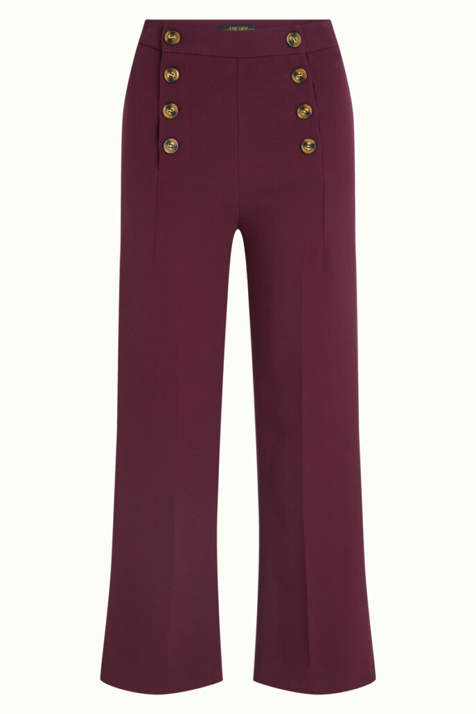Diese Cinzia Pants haben eine elegante Matrosenfront und weite Beine. Der leichte Stretchstoff sorgt den ganzen Tag für Tragekomfort und verleiht gleichzeitig einen modischen Vintage-Touch.