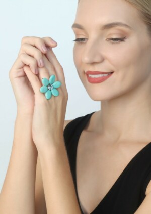 Ring mit Blüte in blau aus der Serie Daisy Dance