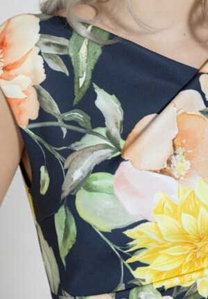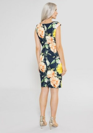 Mit diesem eleganten Etuikleid mit auffälligem Blumendruck ziehen Sie bestimmt bewunderte Blick auf sich. Die kleine Raffung am Bauch sorgt für eine perfekte Silhouette.