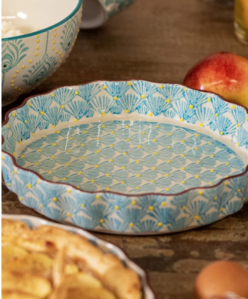 In dieser Quicheform aus Steinzeug werden deine Rezeptideen knusprig lecker gebacken und du kannst sie deinen Liebsten stilecht servieren. Die runde Form aus Steinzeug mit handgestempelten Prints bietet Platz für köstliche, süße und herzhafte Kreationen und überzeugt mit einer tollen Optik. Dank des unkomplizierten Materials lässt sie sich bestens reinigen.