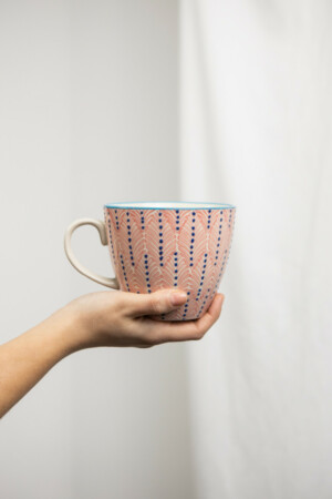 Frische Muster gibt es bei unserem Geschirr aus handgestempeltem Steinzeug. Genieße deine Drinks aus unserer farbenfrohen Tasse in toller Optik. Verschieden und doch harmonisch lassen sie sich unsere Tassen nach dem Prinzip Mix’n’Match spielerisch kombinieren.
